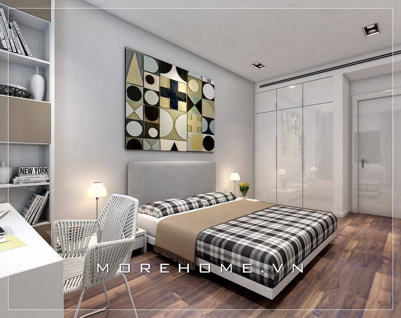 Thiết kế giường ngủ chung cư phong cách trẻ trung, hiện đại đầy sinh động