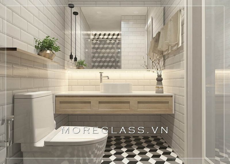 Mẫu thiết kế nhà tắm nhỏ ngọn với các bố trí nội thất, không gian hài hòa ngăn nắp tạo không gian căn phòng thông thoáng, rộng rãi hơn.